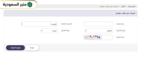 - الخطوة 1: الانتقال إلى صفحة البحث عن طلب مقدم “من هنا“.