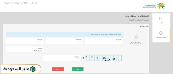 - الخطوة 1: زيارة صفحة الاستعلام عن موظف وافد “من هنا“.